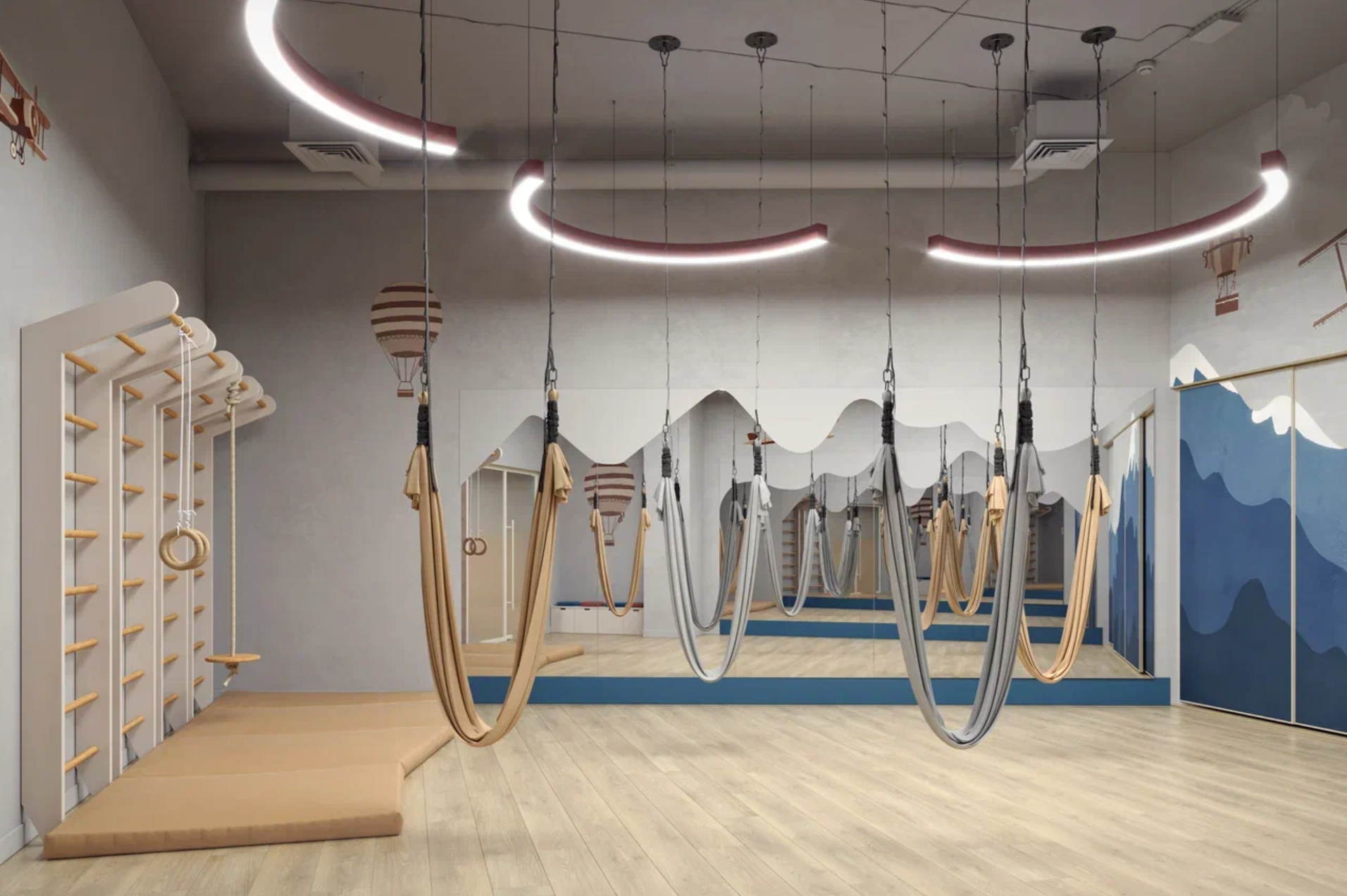 Детское пространство созданное для фитнеса и отдыха